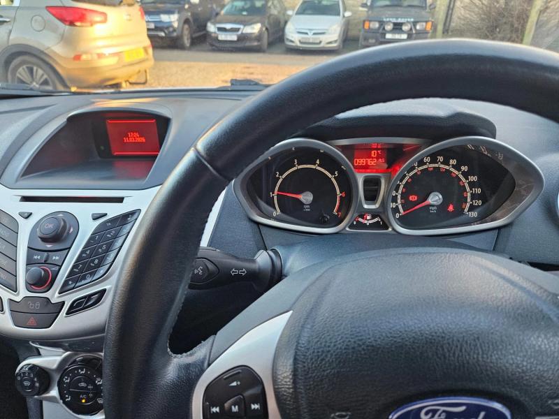 Ford Fiesta 1.25 Zetec (NO WET BELT TO WORRY ABOUT) 5 door manual hatchback. First registered in January 2012. Finished in brilliant frozen white exterior coachwork with contrasting two tone dark grey/black interior cloth trim. We have all the original handbooks and two ignition keys. We have the registration document showing only two former keepers. Covered 99,000 miles with a superb service record consisting of a service book and a huge folder of service receipts including cam belt and water pump replacement and has an MOT certificate until 21st December 2026. This vehicle is in stunning condition inside and out and needs to be seen and driven to be fully appreciated. Please call Ian or Craig to arrange for one of our flexible viewing times. Open 7 days a week by appointment. Part Exchange Welcome.
