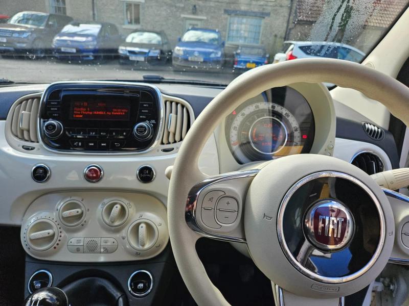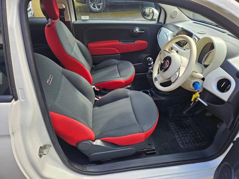 Fiat 500 Pop Star 3 door manual hatchback. First registered in March 2016. Finished in beautiful old English white exterior coachwork with contrasting two tone dark grey/red cloth interior trim. We have the registration document showing 3 former keepers and has covered 83,000 miles with a superb service record showing 10 recorded services from Fiat Main dealer and some specialists cam belt and water pump was replaced at last service. We have all the original handbooks and two ignition keys. Has just been through our own workshops for a full service and inspection to ensure everything is working as it should. Will have a new 12 months MOT when sold. Please call Ian or Craig to arrange for one of our flexible viewing times. Open 7 days a week by appointment. Part Exchange Welcome.